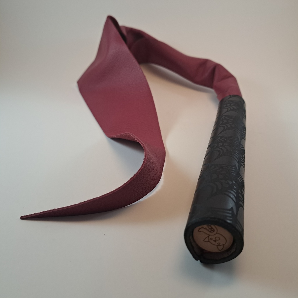 Unleash the elegance and power of craftsmanship with our Dragon's Tongue Whip. This exquisite piece is designed for both functionality and aesthetic appeal, perfect for enthusiasts and collectors alike. Superior Materials: The fall is made from luxurious Italian pebble grain leather, prized for its supple texture and durability. Customizable Handle: The wood-core handle is expertly wrapped in hand-dyed vegetable-tanned leather, offering a rich, personalized finish. Choose from a variety of engraved patterns to make your whip uniquely yours. Exceptional Craftsmanship: Every whip is meticulously handcrafted to ensure a balance of flexibility and precision, delivering a tool that performs beautifully. Whether you're adding to your collection or seeking a high-quality tool, the Dragon's Tongue Whip offers unparalleled artistry and performance.
